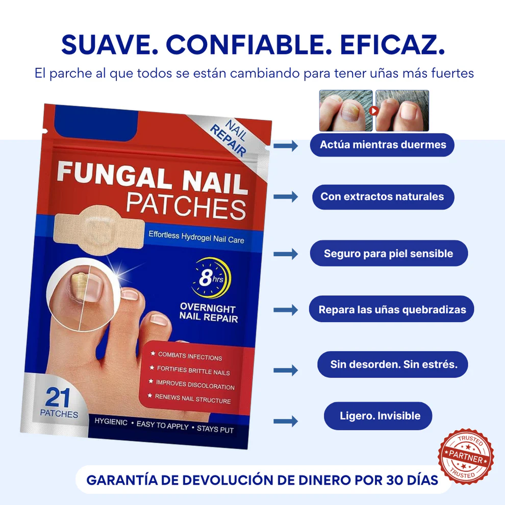 Estos parches ultrafinos y sin desorden actúan mientras duermes – atacando el hongo desde la raíz y ayudando a restaurar unas uñas más sanas y claras, sin complicaciones, sin olor y sin residuos como los tratamientos tradicionales.