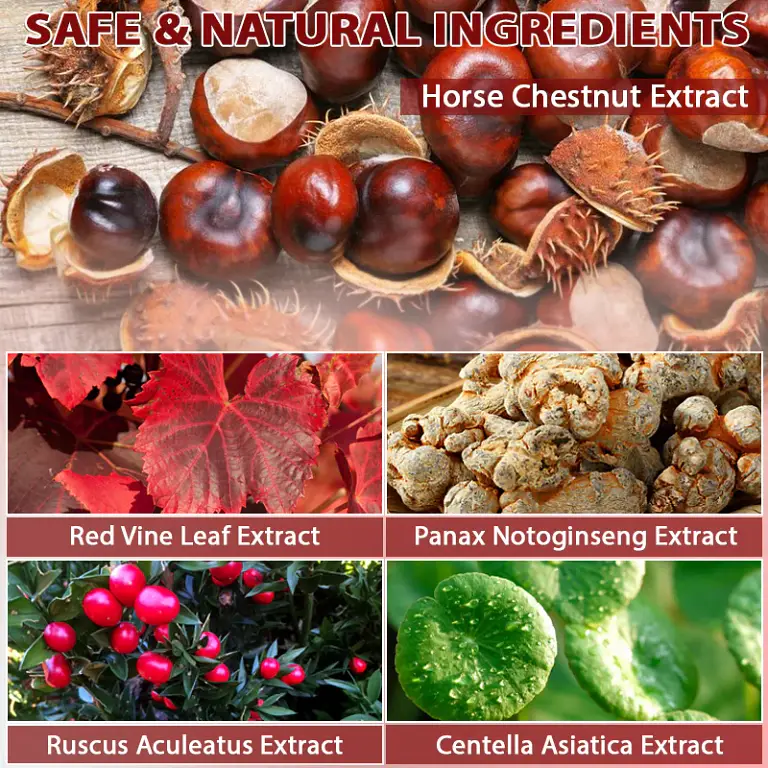 Fivfivgo™ Horse Chestnut SwellAway Massage Gel is enhanced with Red Vine Leaf Extract, rich in anthocyanins and polyphenols that provide powerful antioxidant benefits. These compounds protect blood vessels from oxidative stress, strengthen vein and capillary walls, and improve circulation, reducing swelling and promoting healthy blood flow.
