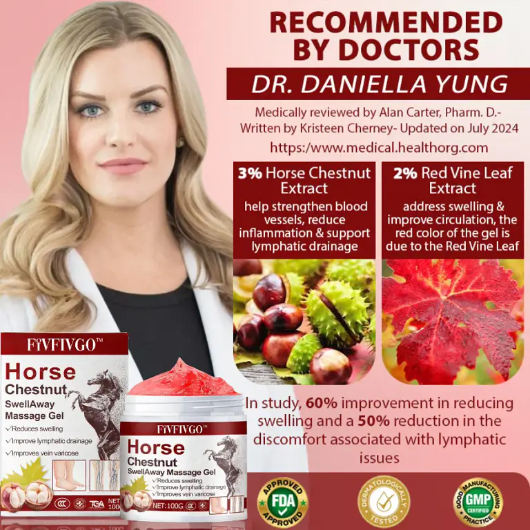 On June 14, 2025, Dr. Daniella Yung, a renowned vascular specialist at the National Institute of Venous and Lymphatic Health, conducted a study evaluating the efficacy of Fivfivgo™ Horse Chestnut SwellAway Massage Gel. This gel contains a potent combination of 3% Horse Chestnut Extract and 2% Red Vine Leaf Extract, known for their ability to address swelling and improve circulation.