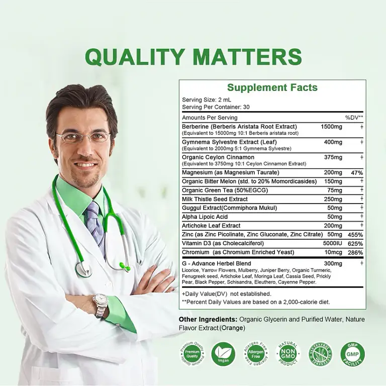 - ✔️ : Our Berberine supplement with Ceylon Cinnamon is vegan, natural, non-GMO, and gluten-free. It does not contain any artificial ingredients, binders, color additives, chemicals, fillers, or preservatives, making it safe to consume. The drop form is easier to take than gummies and capsules. Add 1-2 ml to water, salad, or beverages and take with or before meals.