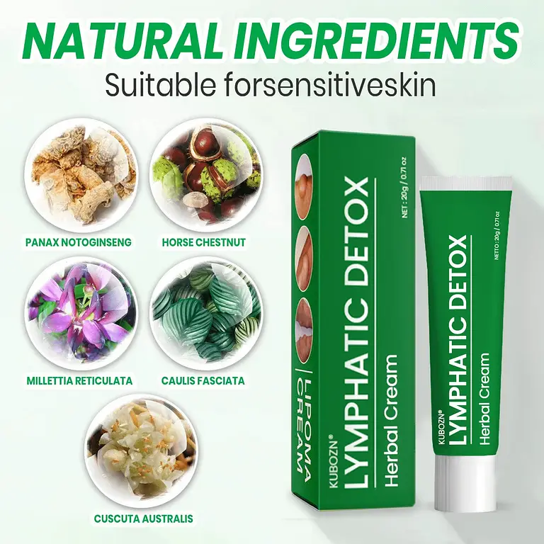 KUBOZN® Lymphatic Detox Herbal Cream is formulated with natural ingredients that work together to reduce swelling, ease discomfort, and support healthy circulation. By promoting the body’s natural detox processes, this cream helps relieve puffiness and restore balance, leaving you feeling lighter, more refreshed, and energized.