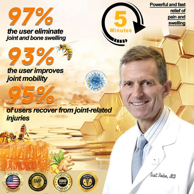 Its key compound, bee venom peptide, penetrates deep into the joints to relieve stiffness, ease inflammation, and restore comfortable movement. Over time, its anti-inflammatory properties help boost synovial fluid production, improving joint lubrication and reducing friction. Many users report noticeable improvements in flexibility and mobility within just 7 days of consistent use.